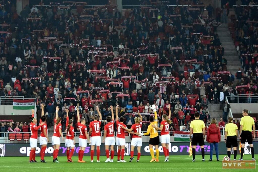 În februarie, se fac patru ani de când este Bianca Sandu legitimată la DVTK (Diósgyőr, Miskolc). Echipa era recent înființată (2016) și juca în liga secundă. Fetele au câștigat 22/22 de partide și au promovat în prima ligă maghiară. „Am 87 de meciuri și 43 de goluri înscrise”, spune jucătoarea. Mă minunez, sunt totuși multe goluri înscrise dintr-o poziție defensivă. „Uneori joc fundaș, deși, în ultima vreme, mai mult mijlocaș la închidere. Dar înscriu mult din faze fixe”, râde Bianca.