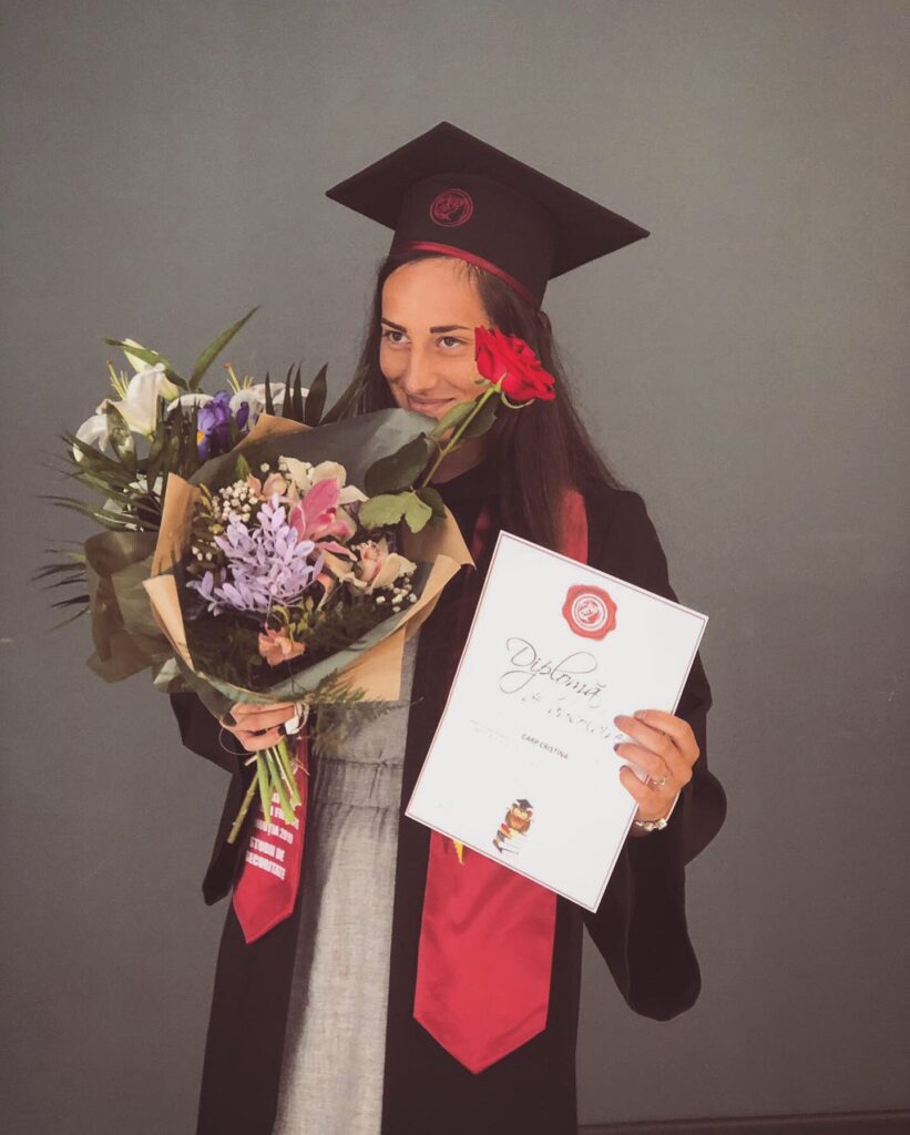 Mai are Cristina Carp timp liber, printre antrenamente, pregătiri și cantonamente? „Când am, pictez. Schițez lucruri”, spune ea. „În rest, mă antrenez suplimentar. Îmi place să învăț lucruri noi. Când te muți dintr-o țară în alta, folosești valută diferită, ai numere diferite de telefon – chiar și un cont în bancă dacă-ți deschizi, procedura e diferită”. I se pare foarte interesant să asimileze cât mai mult, și glumim că, poate, când își va încheia cariera fotbalistică o așteaptă calea diplomației. Dar Cristina împlinește doar 24 de ani la final de iulie. Are mulți ani de joc înainte.