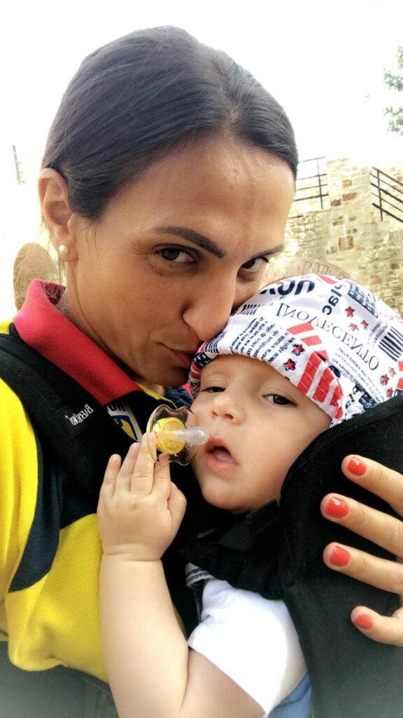 Soțul Florentinei, Rareș Olar, a jucat și el fotbal, așa că amândoi s-ar bucura dacă fiul lor s-ar arăta interesat. „Dar, la fel de bine, dacă vrea să cânte la pian asta va face!”. De curând, Patrick a început grădinița și a anunțat-o că nu e încântat, fiindcă i se pare greu. „<Mami, nu mai vreau să te văd cu bluza roșie!>, mi-a zis. Adică echipamentul de la antrenament. Eu râd, dar nu mi-a fost ușor să-l aud vorbind așa.” De altfel, „experiența” băiețelului în fotbal este serioasă: Florentina povestește că a născut în martie 2018, iar în august era deja înapoi pe teren, în deplasare în Spania. „Eu pe teren, el – un ghemotoc în tribune. La Fortuna, îl mai luam cu mine. O colegă accidentată îl legăna, iar când începea să plângă, o schimba alta.”