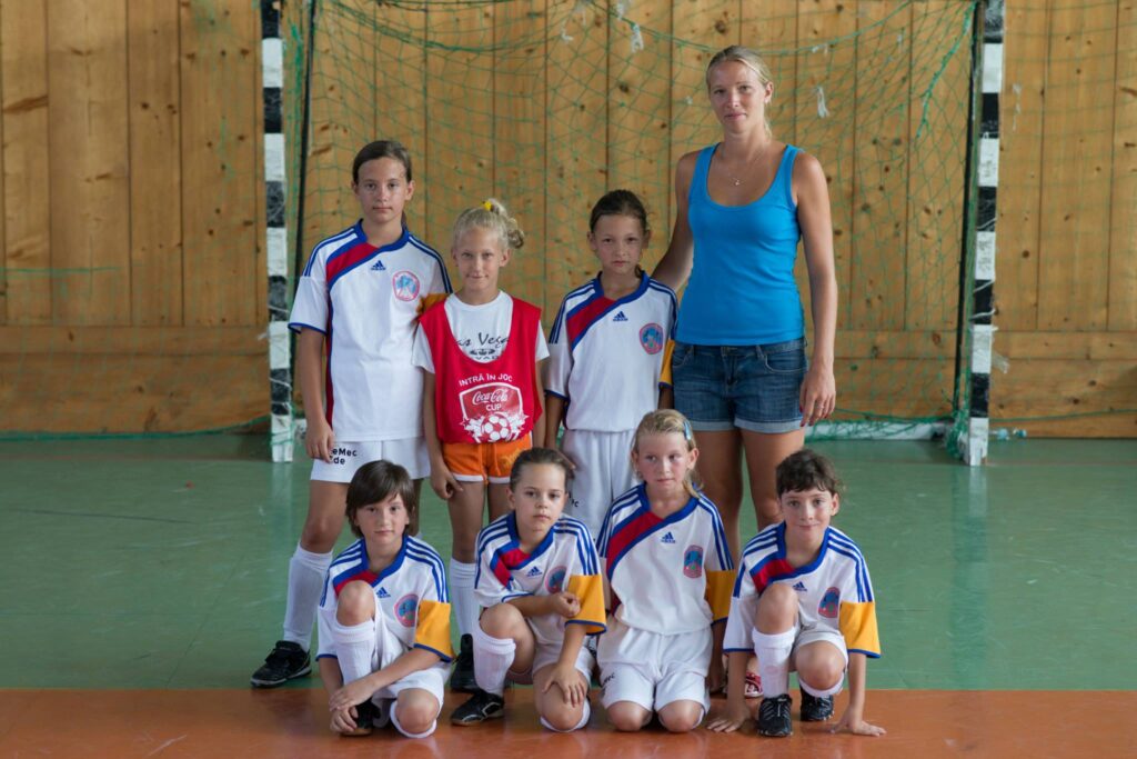 Brigitta (în picioare, stânga) la prima ei competiție de fotbal, care a avut loc la Costinești și unde a pierdut toate meciurile.